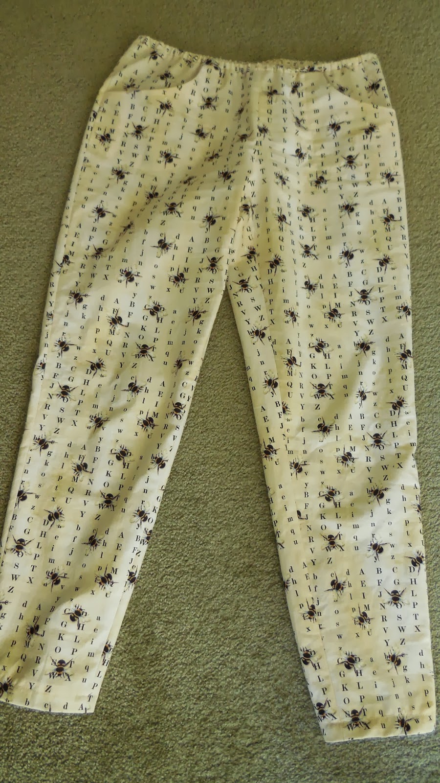 So, I'm on an aimecommemarie roll! And now that it's finally getting warmer, I totally needed some bee-print lounge pants. Even though it meant I had to learn how to buttonhole. And then I didn't need the buttonholes. But it was fun to make them and now I'm less scared of the Papercut Sylphide that I have lounging on my list.